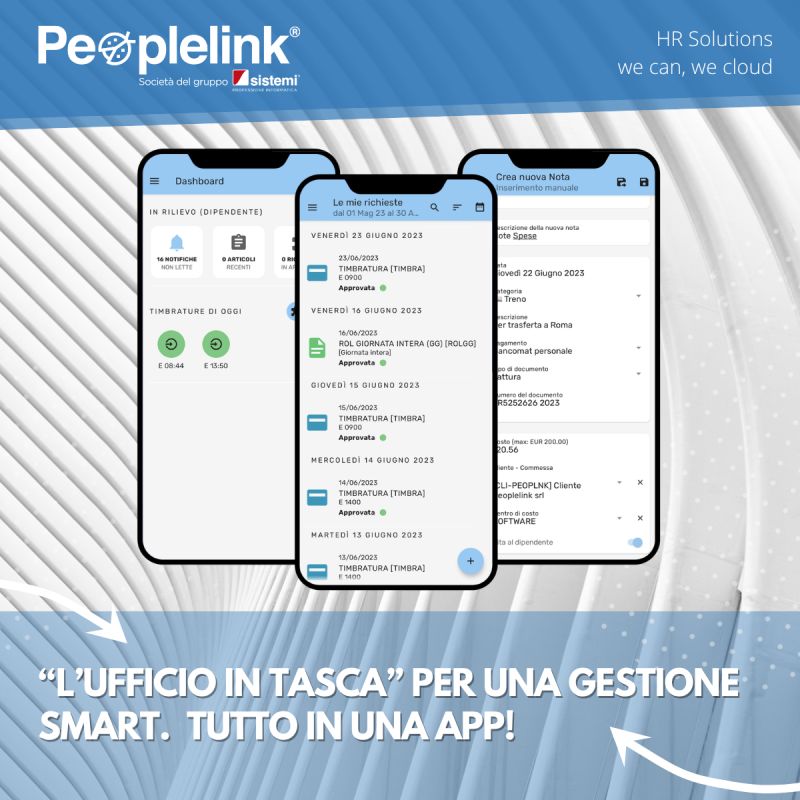 Stiamo parlando della nostra #App, PEOPLELINK MOBILE, che permette di avere sempre a portata di #smartphone tutte le informazioni e le funzionalità già presenti sul portale PeoplelinkOnline.com, nella propria area di self service.
